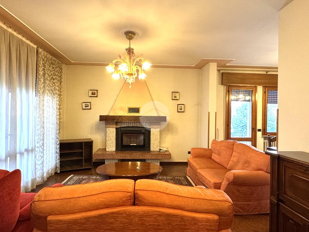 L’ingresso all’abitazione avviene attraverso un elegante portico, ideale per pranzi e cene all’aperto. La zona giorno accoglie con un ampio e luminoso salotto impreziosito dal camino, una spaziosa zona pranzo e una cucina abitabile separata.